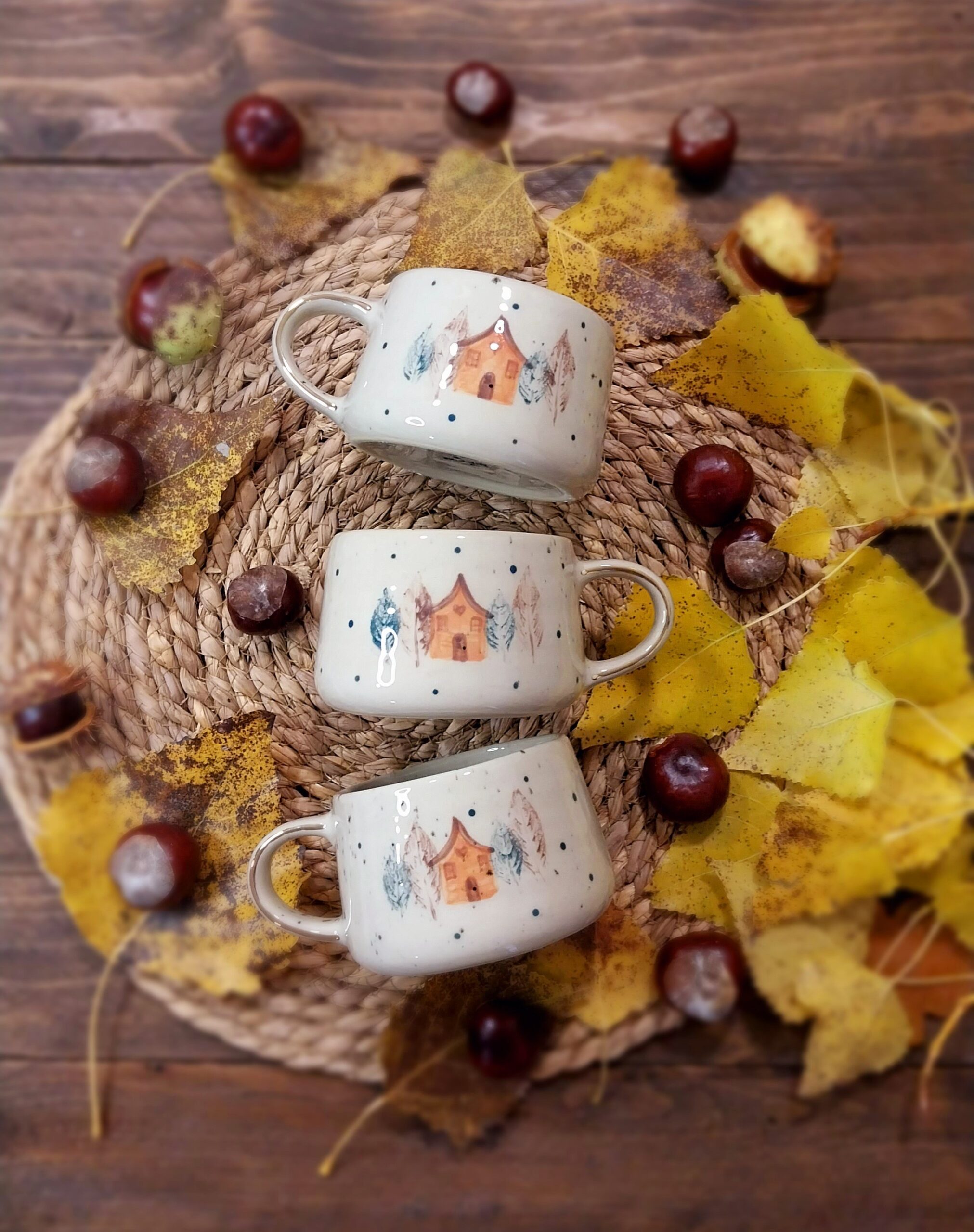 The proces of making a mug is long and requires a lot of patience, skill and attention. The mugs need to be handled with care. Dishwashing is not recommended, nor is placing them in the microwave oven as they contain real gold. Althought the design is the same, the mugs are not entirely identical as the crafting and hand-painting brings small imprefections and artistic freedom wherein the charm and the warmth of handmade object lies. Handmade mug is a perfect unique object as well as a dash of originality and special feeling in your home.