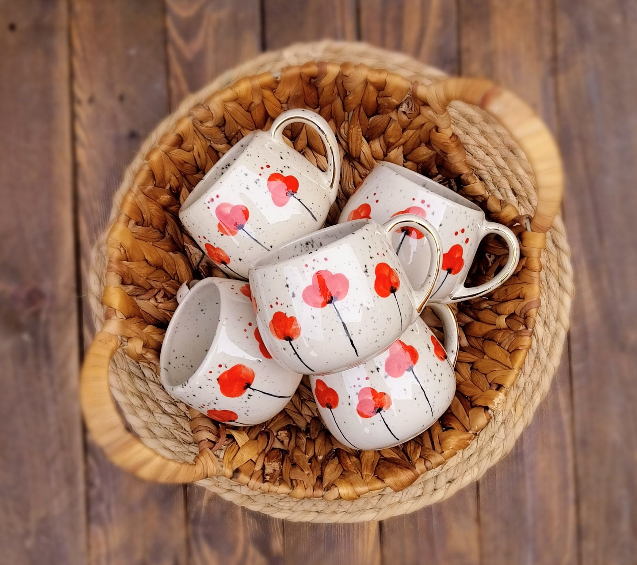 The proces of making a mug is long and requires a lot of patience, skill and attention. The mugs need to be handled with care. Dishwashing is not recommended, nor is placing them in the microwave oven as they contain real gold. Althought the design is the same, the mugs are not entirely identical as the crafting and hand-painting brings small imprefections and artistic freedom wherein the charm and the warmth of handmade object lies. Handmade mug is a perfect unique object as well as a dash of originality and special feeling in your home.